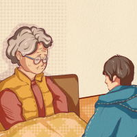外面风大,我赶紧让母亲进屋坐下。儿子进厨房清蒸鲈鱼,我坐在母亲旁边。我本想陪母亲聊聊天,母亲虽然没有读过书,大字不识,但还算一个比较健谈的人。以往,母亲见到我回来,总喜欢跟我聊一聊张家长李家短的邻里趣事。然而今天的母亲,精神很差,兴致不浓。她背靠着沙发,闭着眼睛,脑袋歪向一边,呼吸声还特别重,上气不接下气的,就像才跑了五千米下来,远远地都能听见浓浓的喘息声。