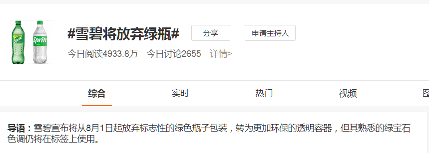 7月28日,#雪碧将放弃绿瓶#一词登上热搜榜第一。