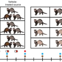 他们观察到,3天后,与接受治疗的雪貂关在一起的未感染雪貂中,没有检测到具有传染性的SARS-CoV-2颗粒,包括在鼻组织中也没有。相比之下,与未接受治疗的雪貂关在一起的未感染雪貂都受到了病毒的感染。这种接触在24小时后开始产生传染性的病毒颗粒,到研究结束时,传染的复制阶段达到了峰值。
