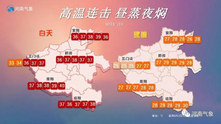 今天到8日,全省大部分县市将出现35度以上的高温闷热天气,黄河以南大部最高气温将达37度左右或以上,其中7到8日,西北部、南部部分县市达40度。