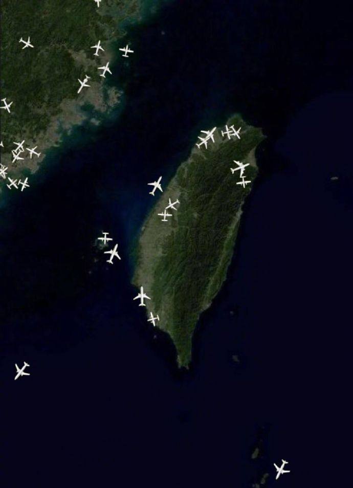 中国人民解放军宣布将于8月4日12时至7日12时进行重要军事演训行动 ,并组织实弹射击。台媒统计,演习期间预计将有18条国际航线受影响,截至3日晚间8时,各机场已经有66班次国际航班取消。根据最新ads-b数据显示,目前演习区上空已无民航机飞行。