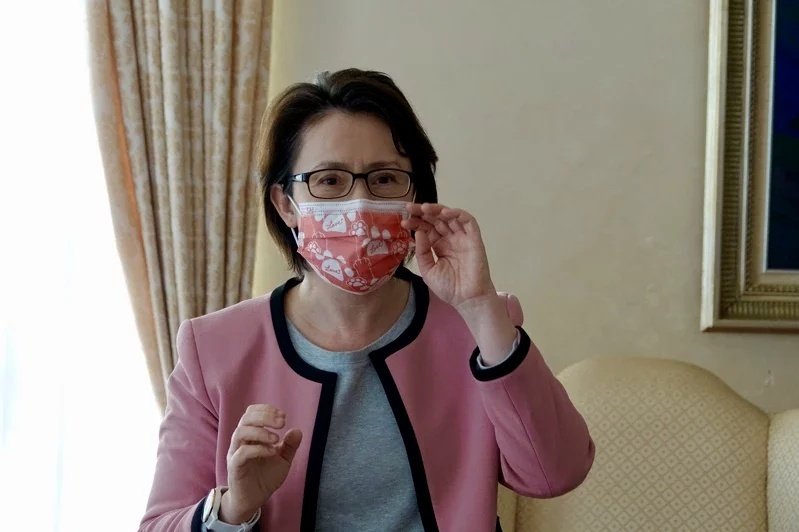 萧美琴戴着“战猫”口罩