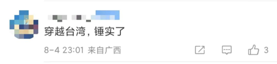 国防大学孟祥青教授解读称:“我们这次演习,包括实弹火力试射,也是首次穿越台岛,而且是穿越了台湾的‘爱国者导弹’密集部署的空域,同时是在美国‘宙斯盾’眼皮底下精准打击目标。这说明什么?说明我们军队已经解决了在远海远域,看得见打得准的问题,反映了我们武器装备性能大幅提升。”