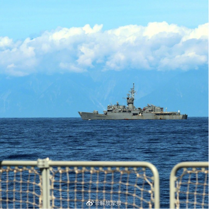 《解放军报》发布的军舰航行照片也引发热议,照片显示,一名解放军海军战士在军舰甲板上手持望远镜观察的照片,照片近处是一艘舰艇,远处的则是海岸线和山脉,海岸线上的白色柱状建筑物依稀可见。