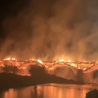 目前桥体已烧毁坍塌,暂无人员伤亡