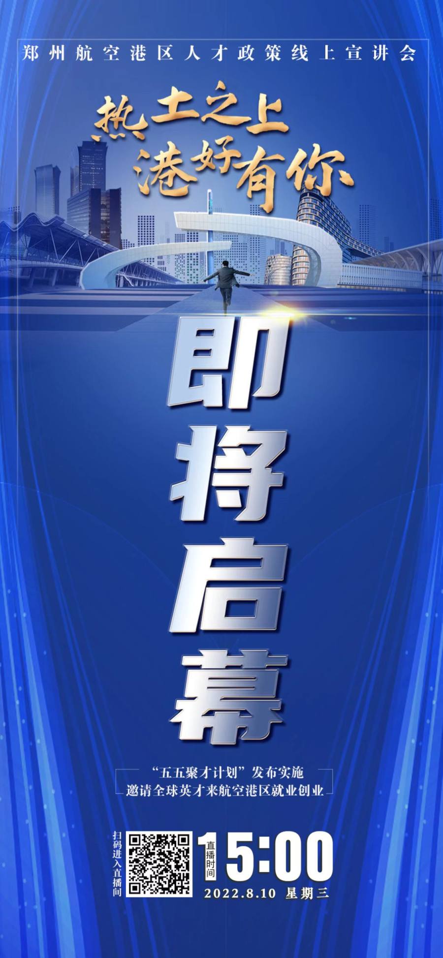 2022年8月10日(周三)下午3时,郑州航空港区“热土之上、港好有你”线上宣讲会将正式启幕,此次宣讲会不但会推出系列人才政策“大礼包”,还将发布“招贤令”推出上万个优质岗位,吸引各类英才前来创新创业、共同打造中部地区产业人才谷。