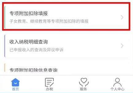 (四)2021年需要新增或者2021年首次填写专项附加扣除,直接选择首页的“专项附加扣除填报”。