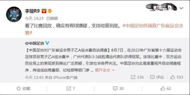 正当外界在热议比赛时,中国足球协会官方宣布对本场比赛启动调查。公告表示,该场比赛中,双方运动员在场上的表现受到舆论广泛质疑,引发社会各界关注。中国足协对此高度重视并启动调查程序,将组成由竞赛部、纪检部等部门参加的调查组,于8月8日赴广州进行调查。