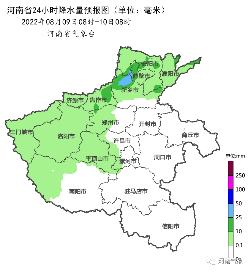 淮河以北有分散性阵雨、雷阵雨,其中安阳、鹤壁、濮阳、新乡西部、焦作、济源、三门峡、洛阳、郑州西部和北部、平顶山西部、南阳北部局部有大到暴雨,并伴有短时强降水、雷暴大风等强对流天气;