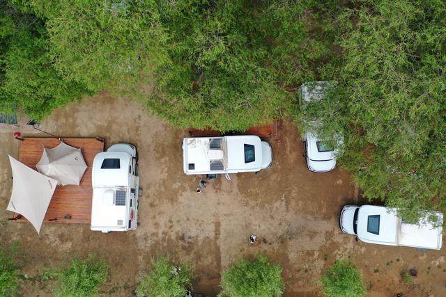 甘肃省永靖县刘家峡魏家坡房车露营活动现场(无人机照片)。