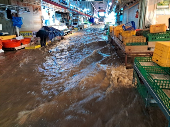 △8月8日,韩国京畿道富川市某市场因暴雨被淹 图片来自韩国媒体
