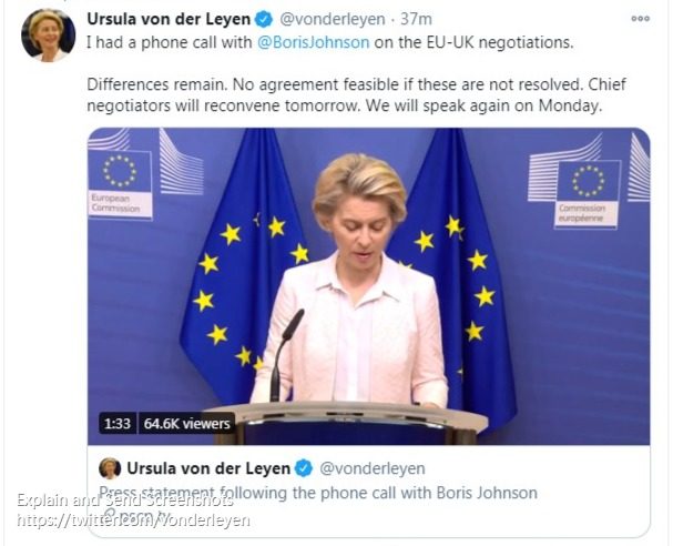 声明表示:英国和欧盟欢迎在许多谈判领域取得进展。但是在渔业捕捞权、公平竞争规则以及如何执行新规方面存在重大分歧。双方领导人强调,如果不解决这些问题,任何协议都无法达成。
