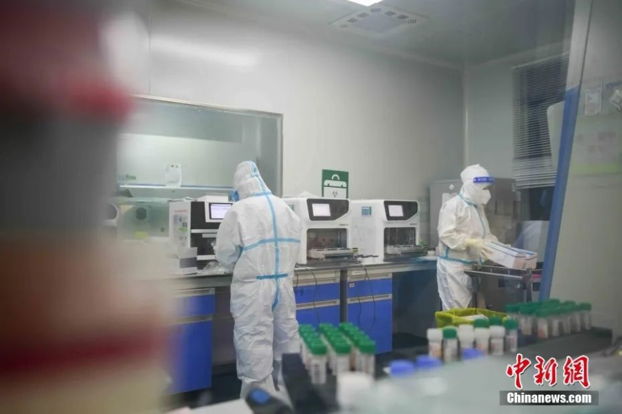 8月9日,西藏拉萨,西藏自治区疾控中心的检测人员在实验室内工作。