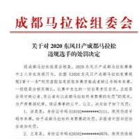 成都马拉松组委会在相关处罚决定中透露,经核查,今年成都马拉松赛事中2人存在违规行为。具体为:
