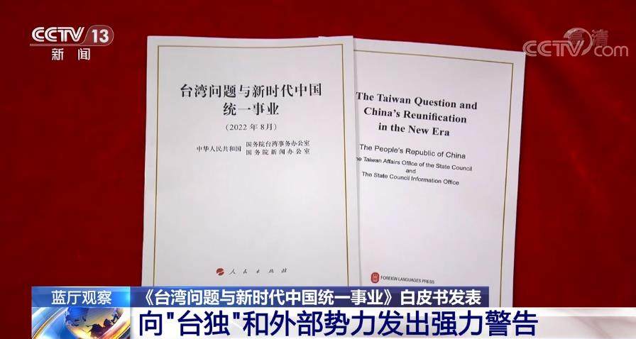 时隔22年,中国政府发表最新一份台湾问题白皮书,引发外界高度关注: 对“台独”零容忍、宣示对和平统一的“最大诚意”、不承诺放弃使用武力等内容成为关注焦点。还有不少媒体关注到,这份白皮书,是在美国众议长佩洛西窜访台湾地区后,中方在台岛周边实施军事演训的背景下发表的,或可将其视为中方对美近期不断挑战一个中国原则的反制举措。
