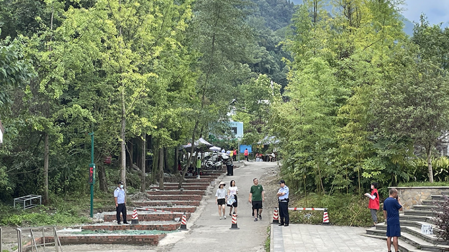 为何不干脆禁止游客进入沟内?宝山村一名在现场维护秩序的志愿者称,此前当地在沟口设置有铁丝网等障碍物,但不久就会被游客破坏,“即便上面堵住了,也有人绕到湔江河滩,通过水沟进入龙漕沟内。”