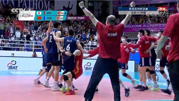 中国男排击败日本夺冠。 直播截图