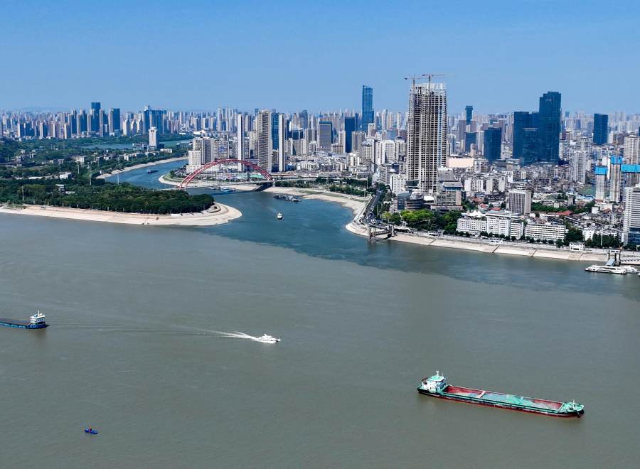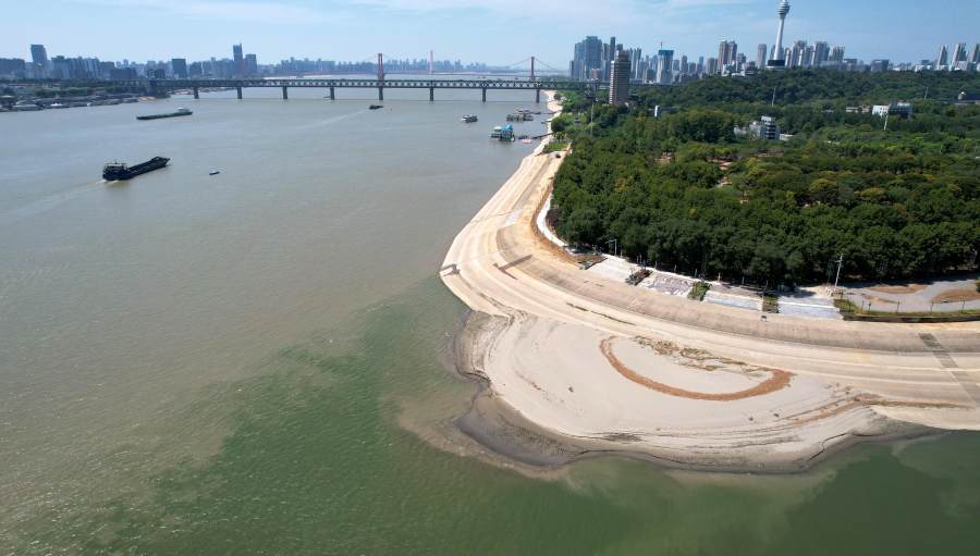 8月15日,武汉,汉口江滩大面积滩涂露出水面。图源 央视新闻