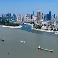 正值汛期的武汉长江江滩,不见波澜壮阔的滔滔江水,亲水平台也露出了大片沙滩。15日17时,长江汉口站录得水位仅为17.22米,是长江武汉段有水文记录以来历史同期最低。