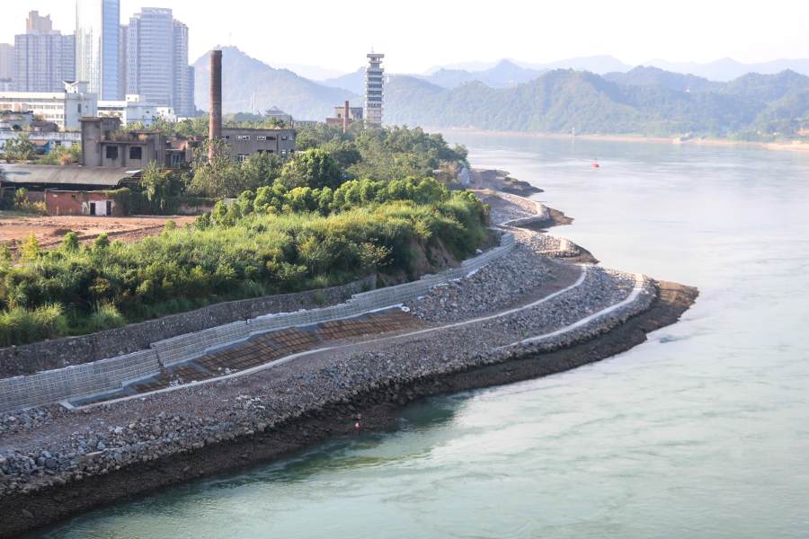 8月15日,湖北宜昌,长江宜昌段岸线滩涂清晰可见。图源 央视新闻