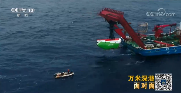 11月13日,“奋斗者”号与“沧海”号着陆器联合作业,全球首次实现万米洋底4K电视信号直播。