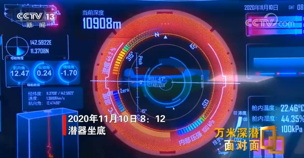 11月10日,“奋斗者”号再次出发,向挑战者深渊发起挑战,那里是马里亚纳海沟的最深处,也是世界海洋的最深处。8时12分,“奋斗者”号成功坐底,深度为10909米,这是中国载人深潜的新纪录。