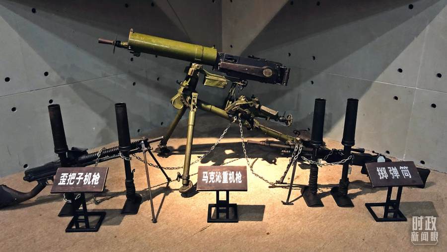 △辽沈战役纪念馆展出,歪把子机枪、马克沁重机枪和掷弹筒。(总台央视记者许永松拍摄)