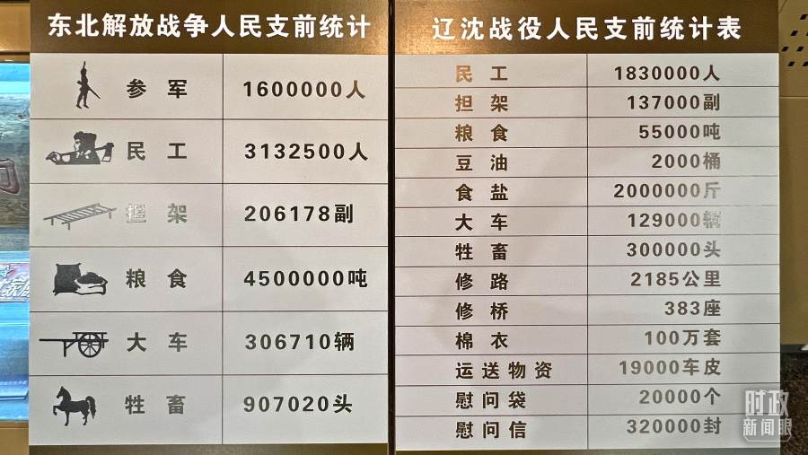 △辽沈战役纪念馆展出,东北解放战争和辽沈战役人民支前统计表。(总台央视记者邢彬拍摄)
