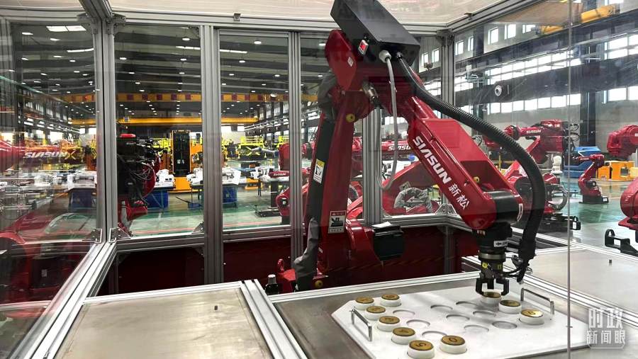 在新松公司,习近平总书记考察当地推动企业科技创新等情况。