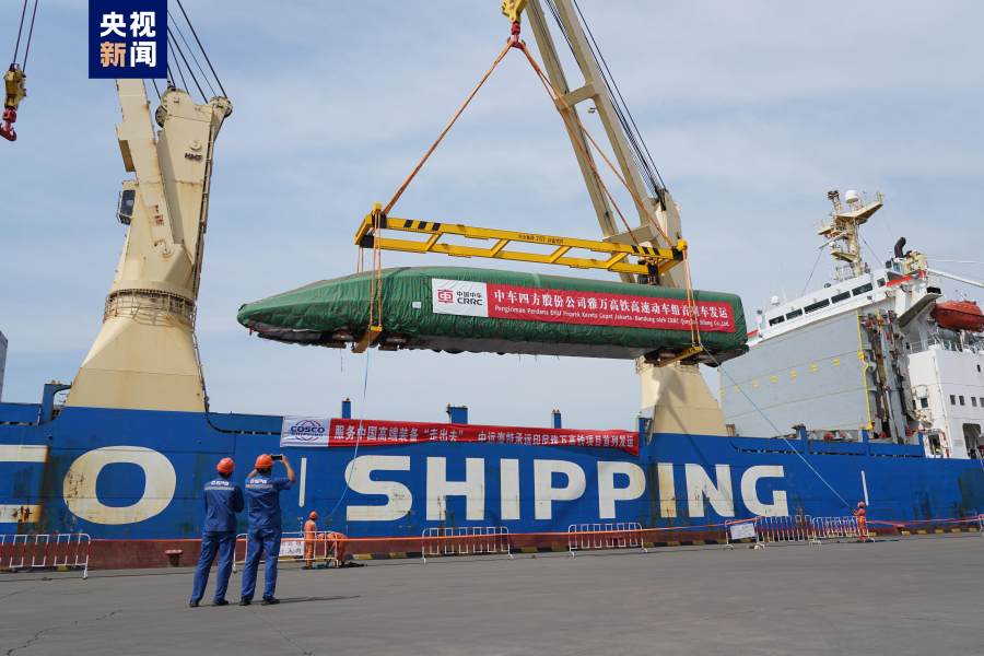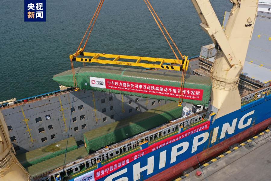 8月21日,我国出口印尼用于雅万高铁的1组高速动车组和1组综合检测列车在青岛港顺利完成装船,通过海运发往印尼。这是雅万高铁首批发运列车,标志着我国首次出口国外的高铁列车正式启运。