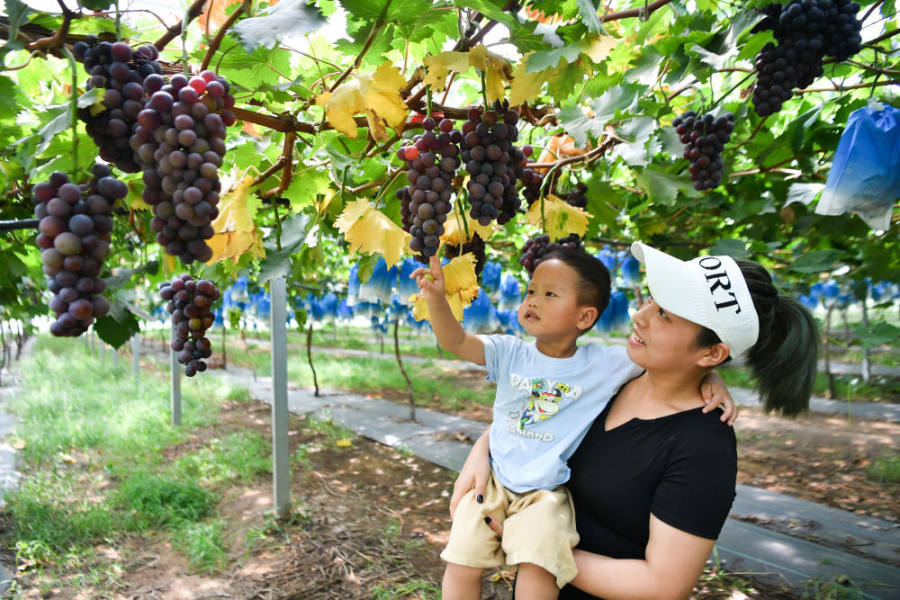 2022年8月19日,游客在位于陕西省西安市鄠邑区的一家种植养殖业专业合作社游览。新华社记者张博文摄