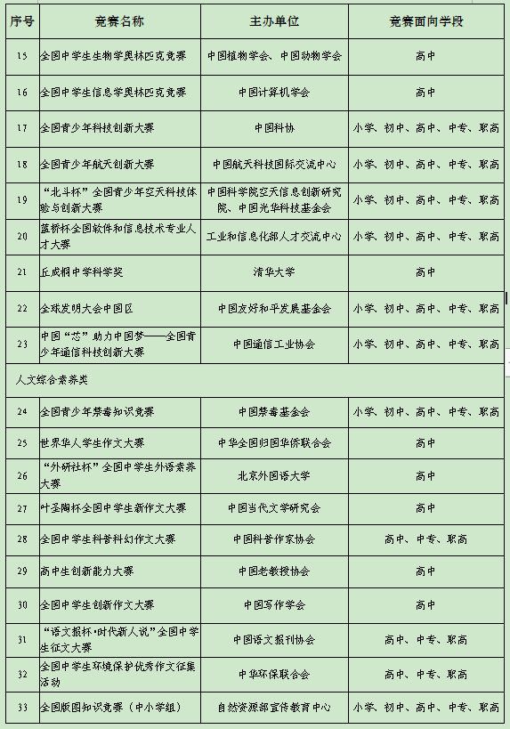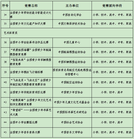教育部公示2022-2025学年面向中小学生的45项全国性竞赛活动名单