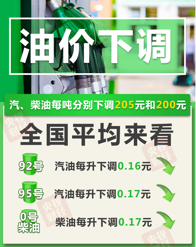 95号汽油每升下调0.17元 ;