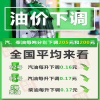 92号汽油每升下调0.16元 ;