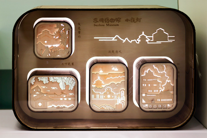 5月15日在苏州博物馆文创商店拍摄的以博物馆建筑为设计灵感的小夜灯系列文创产品。新华社发(倪黎祥 摄)