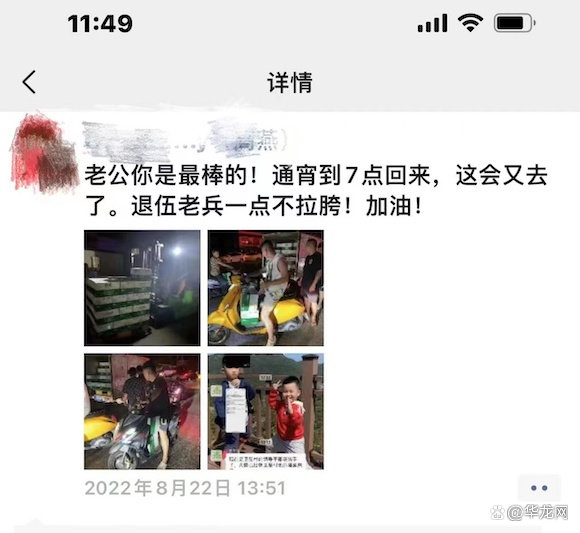 一位骑手妻子的朋友圈。受访者供图