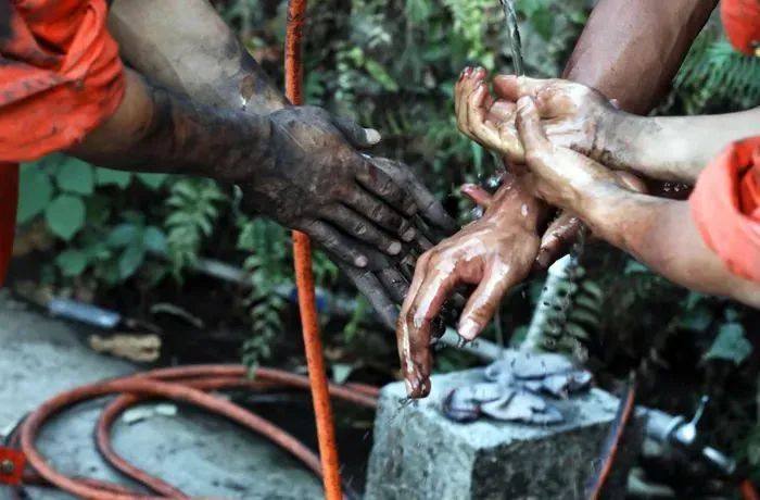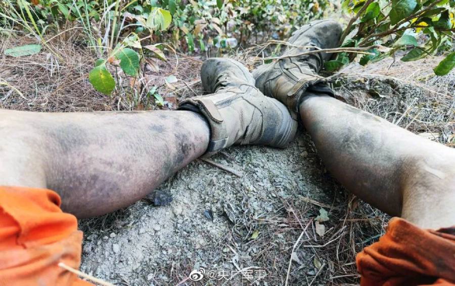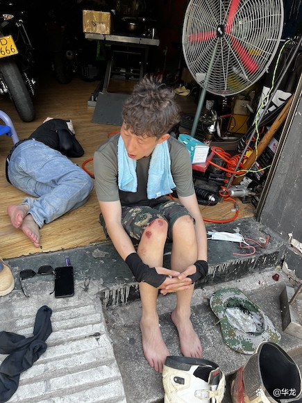 从21日晚到24日下午,除了短暂的休息和做核酸,李鑫和伙伴们几乎都在山上。太热,就拿着水管往身上冲;太困,就趴在箱子上睡觉。很多人的腿上都摔破了皮。