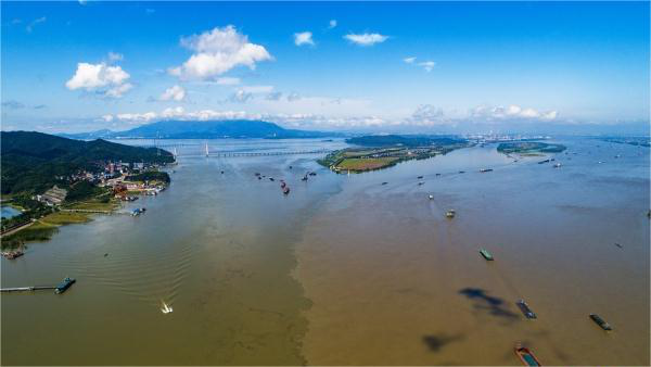 此前,长江与鄱阳湖的交汇处“江湖两色”水线分明