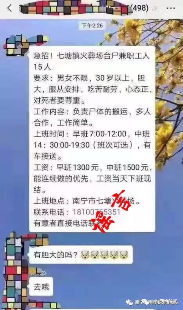 殡仪馆、火葬场日结工资上千?网传的“高收入”背后可能是陷阱