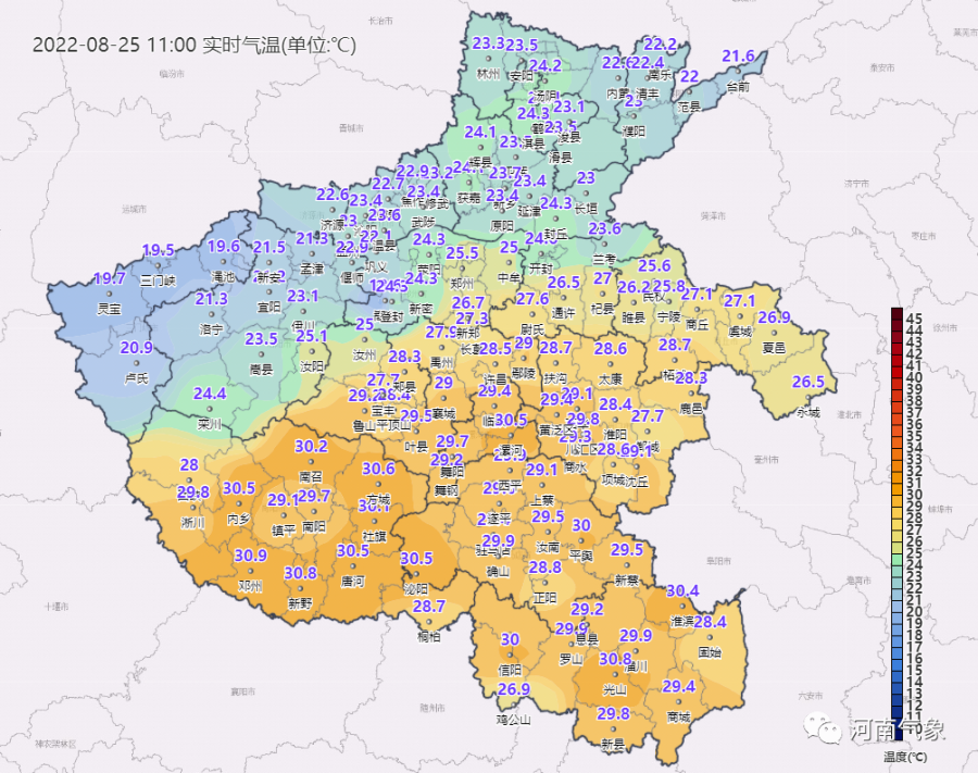 30日,黄河以南阴天,有阵雨、雷阵雨,其中南部有中雨;黄河以北多云。