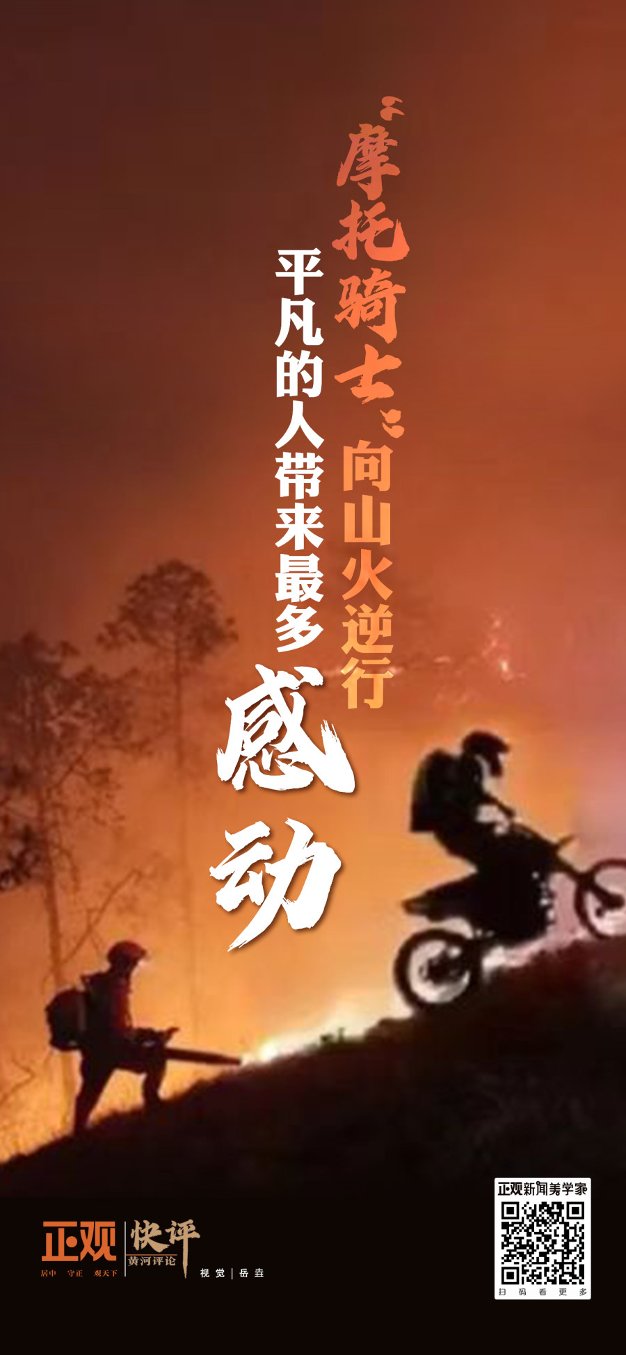 正观快评:“摩托骑士”向山火逆行,平凡的人带来最多感动