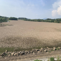 “水都快干了”,石国宝看着已经见底的白水塘水库面带苦涩的说道。从6月20日开始,整个石岗村滴雨未下,而从7月20日开始,白水塘水库的水位就开始下降,直至8月25日晚,白水塘水库大部分已经干涸见底,只有水库大坝上的痕迹才能证明这里之前的储水是何等丰富。自大旱以来,石国宝父子每天五点起床去给稻田灌溉,可尽管如此,却挡不住大旱带来的影响,面对着水库干涸、稻田无水可用的现状,石国宝父子只有满心的无奈。