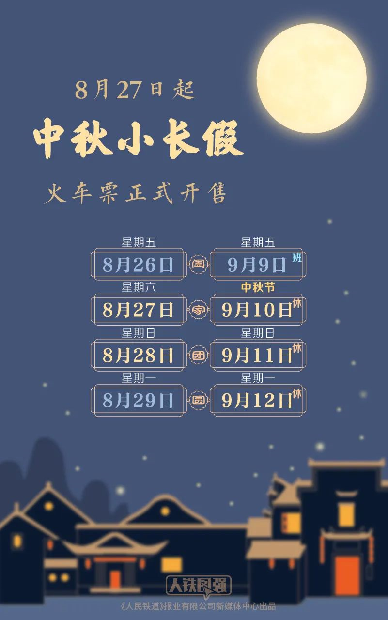 8月27日,2022年中秋假期首日的火车票将正式开售