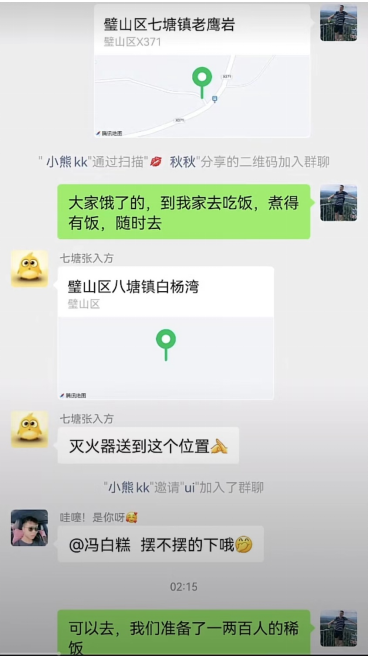 他在缙云山璧山方向扑火的摩托车队群中喊话,“大家饿了的,到我家吃饭,随时!”