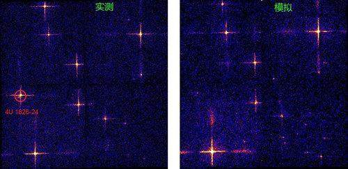 对银河系中心天区单次观测获得的X射线图像(左图)和仿真图像(右图)