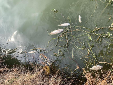 可是辛辛苦苦的照顾鱼苗,付出这么多努力的邵火金每天来到鱼塘看到的却是大量死鱼,让这个老人深感疲惫。“最多的时候一天死200条。”提起这些,邵火金紧皱的眉头间有一抹解不开的愁绪。这两个月来,邵火金每天都要清理掉大量鱼尸,走在鱼塘四周,可以看到很多灼烧的痕迹。