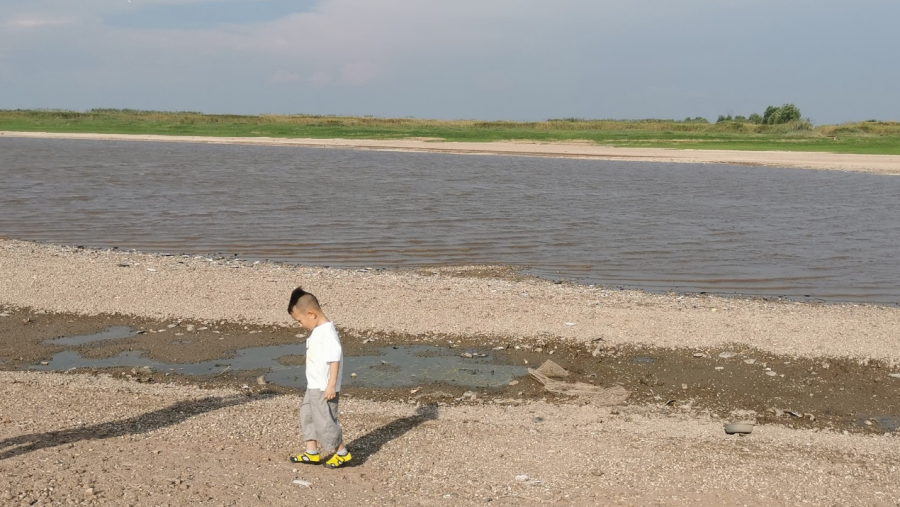 自君山纸厂南行数公里,沿路大片的滩涂与水塘交织,公路旁三三两两的游人将车停在路边,在尚未干涸的狭长水域旁垂钓。来自湖南湘潭的张先生一家已经是第三年来洞庭湖了,今年这里的景色让他大吃一惊,“我带小孩子来玩,每年暑假开学之前都会带他来这钓鱼,”面对记者对其收获的询问,张先生显得感慨万千,“去年来的时候水很高,车子我都要停在上面,今年却只剩这几个小池塘了。”