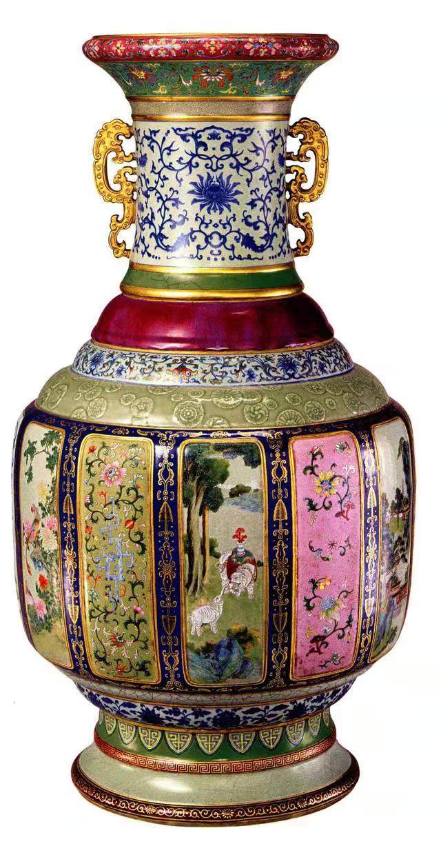 各位读者大家好,我是各种釉彩大瓶,和金嵌珍珠天球仪一样,出生于清朝乾隆年间,是景德镇的御窑烧制。提到我的名字,不熟悉的小伙伴可能有疑惑,各种釉彩大瓶,都是哪几种大瓶呢?其实,我得名字就叫“各种釉彩大瓶”。之所以叫这个名字,就是因为我是古代官窑瓷器中装饰层次最多、釉彩用料最考究、设计复杂、制作难度极高的瓷器,包括珐琅彩、洋彩、仿宋代哥釉、松石绿釉、仿宋代钧窑窑变釉、斗彩、粉青釉、霁蓝釉、仿宋代官釉、粉彩、珊瑚红釉、仿宋代汝釉、酱釉等十几种釉彩。
