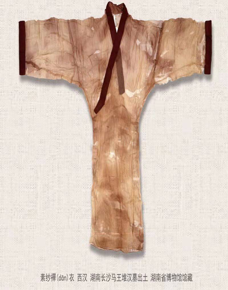 这么轻的重量,是因为我由精缫的蚕丝织造,以单经单纬丝交织的方孔平纹而成,丝缕极细,轻盈精湛。正因此我成为了世界上现存年代最早、保存最完整、制作工艺最精、最轻薄的一件衣服。