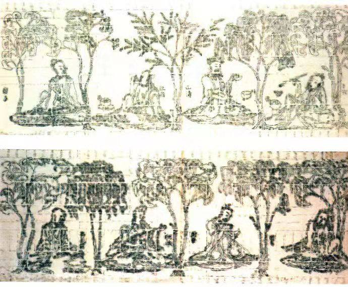 画中人物之间以银杏、槐树、青松、垂柳、阔叶竹相隔,8 人均席地而坐,但各呈现出一种最能体现个性的姿态,比如嵇康抚琴、山涛饮酒等。体现出士族知识分子自由清高的理想人格。目前我的创作者还没有明确的定论,但无论是谁,我的存在都为研究魏晋南北朝时期的绘画提供了可靠而详实的资料。